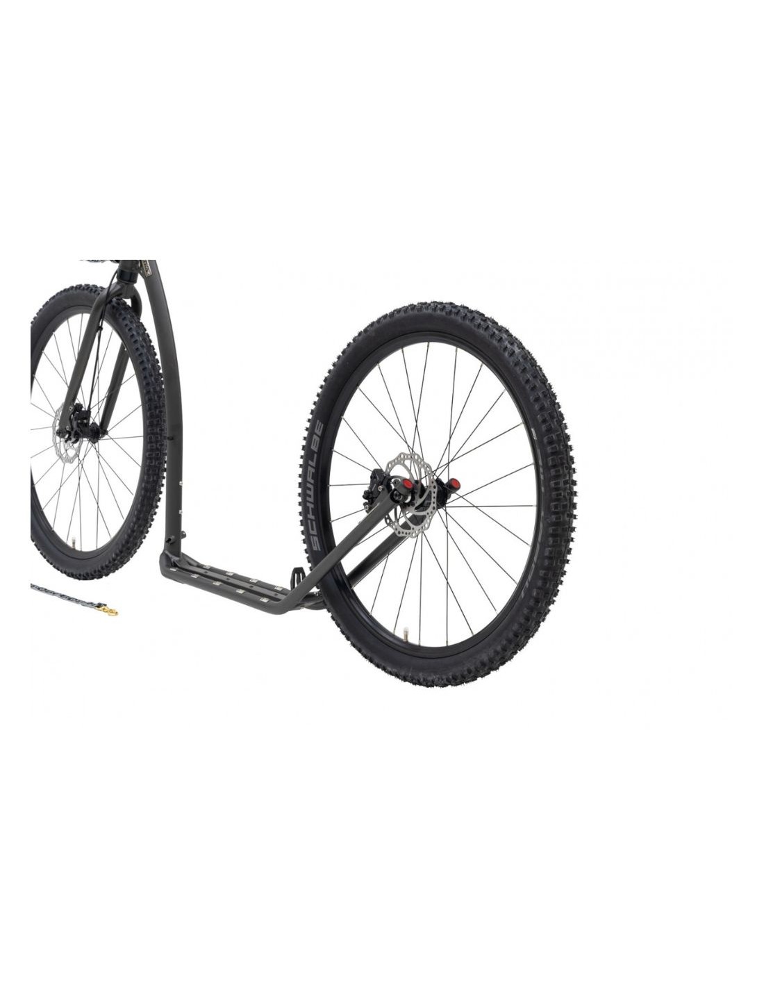 Sports. Course. Pour le mushing et le tout-terrain. La trottinette Kostka Trip Max Dog (G7) est équipée de grandes roues de 29/27.5" avec des axes solides et des pneus tout-terrain pour une garde au sol maximale et une grande stabilité. Profitez d'une conduite fluide et confortable, même sur des terrains difficiles.